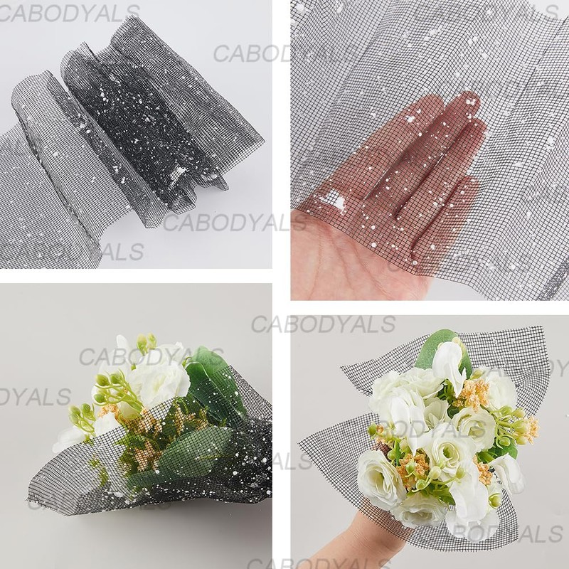 - Black Sparkly Mesh Ribbon: This ribbon is made from a light and sheer black mesh base, covered with dense snow colored sequins, which reflect the dazzling light like stars twinkling in the night sky, dreamy and gorgeous, perfect for decoration and can add a touch of sophistication to any project