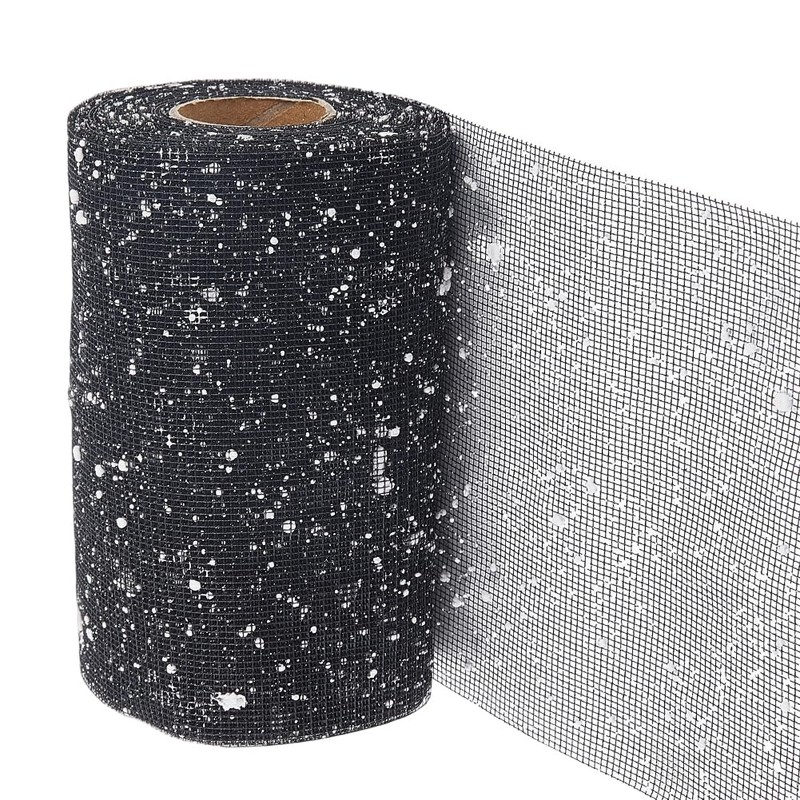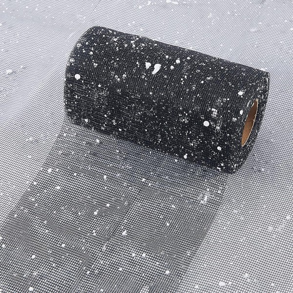 - Size: There are 16.4 yards of black sparkly mesh ribbon. The black sparkly mesh ribbon: about 5.9 inch(150mm) wide, about 16.40 yards(15m)/ roll