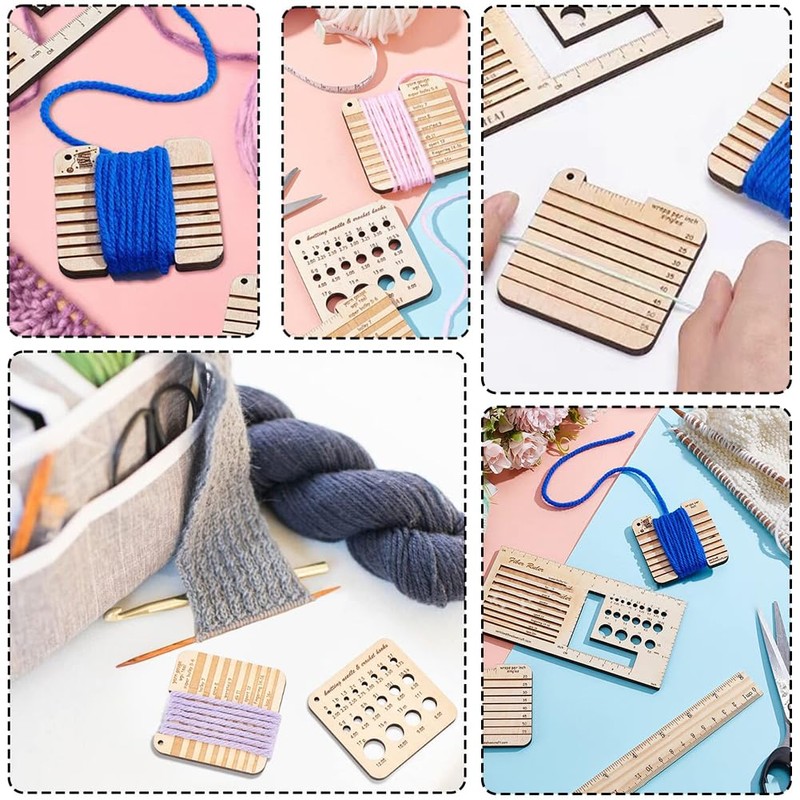 CABODYALS 4Pcs 63MM Knitting Needle Stitch Gauge Multifunctional Wood Crochet Hook Yarn Wrap Guide Board Spinning Control Card Knitting Tool for Spinners WPI Guide Gauge Measuring Tools Accessories