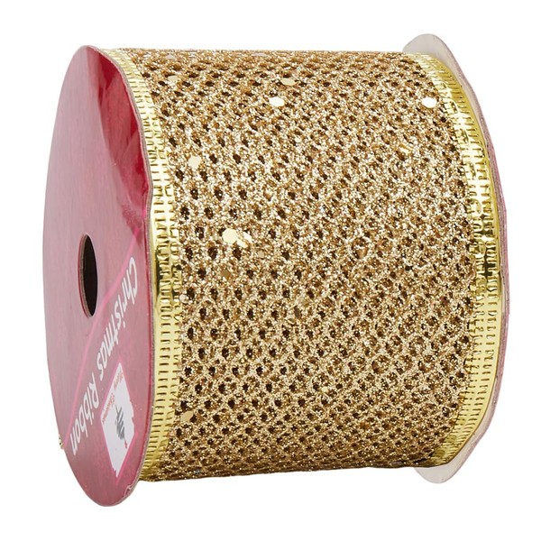 - Size: There is 1 roll of gold sparkle mesh ribbon 9.84 yards in total. Gold glitter mesh ribbon: width: 2.48 inch ( 63mm), 9.84 yard/ roll. ( 9m/ roll)