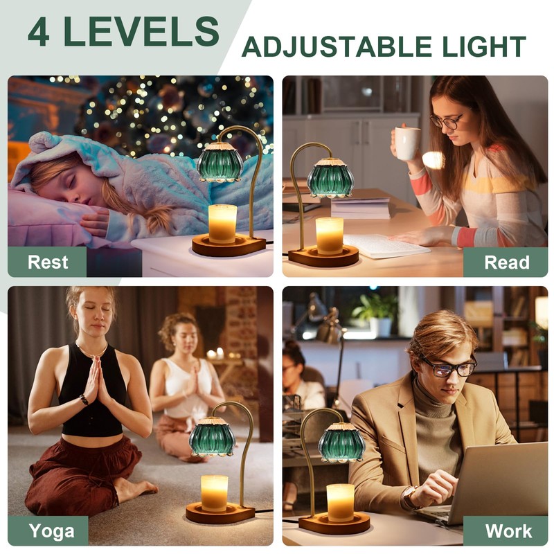 - Dimmable & Timer Candle Lamp: The four-stop luminance lighting is adjusted to meet the needs of candles melting speed and fragrance volatilization speed. You can adjust the brightness to the most comfortable level for your eyes. 1/2/4 hours timer setting provide you a reassuring sleep without worrying about accidents or overheating candle.