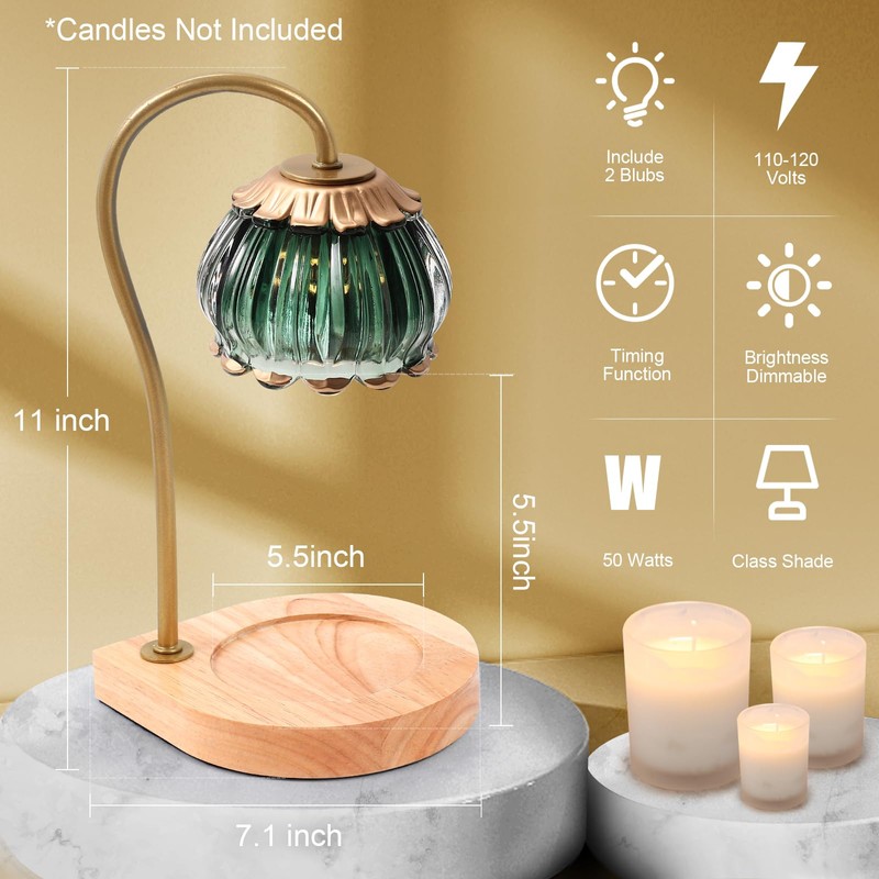 - Safe & Environmental: Equippted with 50-watt halogen warming bulb (included), melt candles efficiently and safely. No open flame, let you away from fire and pollution smoke, and enjoying every minute of fragrant fresh air. Suitable for all sizes of jar candles, recommended sizes up to 5.5 inches.