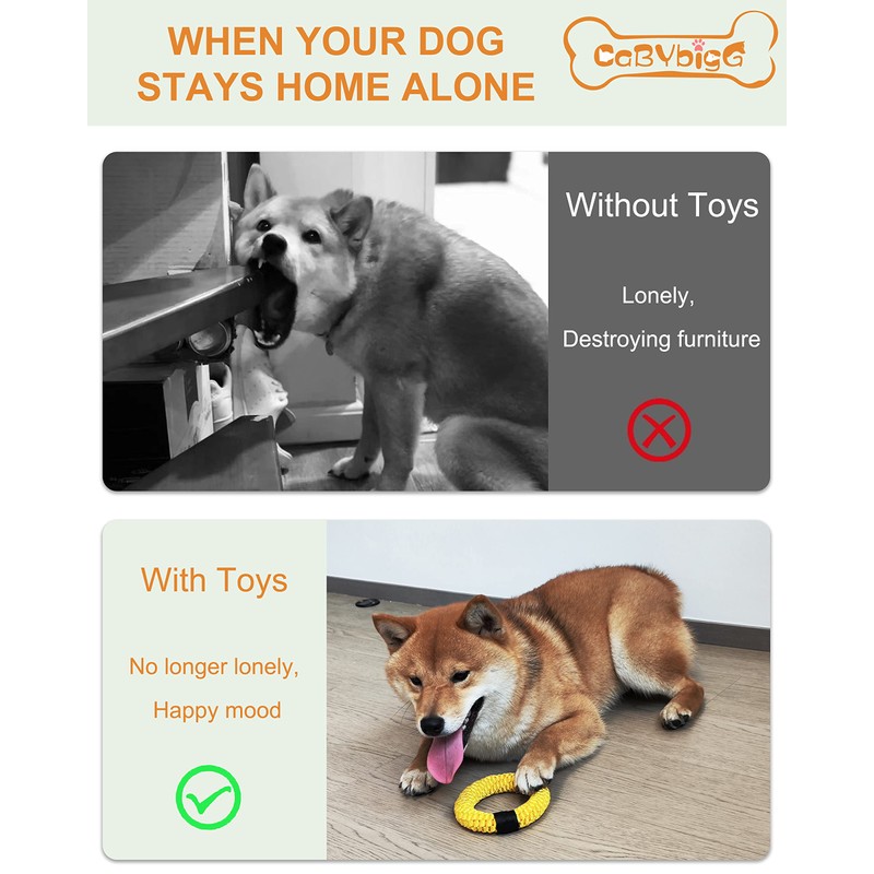 - FOR MEDIUM AND SMALL BREEDS:The Ring Dog Toy is ideal for medium and small breeds,keep dog away from loneliness when you are not around.and your shoes, clothes, and furniture will not be destroyed