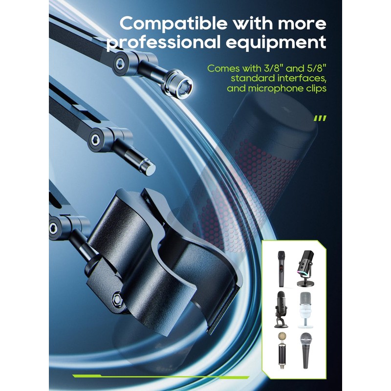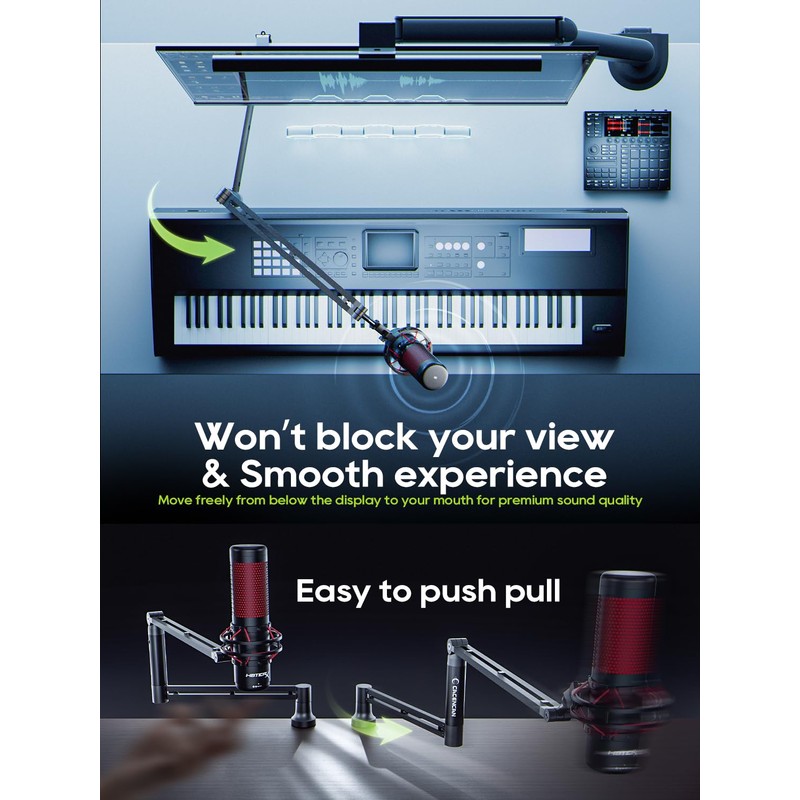 - Extra Length & Height: Equipped with a . inch ( cm) extension rod, it can adapt to wider desks or span across monitors, ensuring that the microphone and boom arm do not obstruct your view, allowing you to adjust the microphone to the perfect position with a adjustable arm that rotates to your needs.