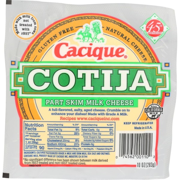 Cotija is named after the Mexican town of Cotija de la Paz and is one of the most popular cheeses in Mexico. This American made, Mexican cheese is dry in texture and somewhat salty; it is aged to assure a robust flavor; Cotija is the only choice crumbled over refried beans, soups and salads; it is known as the Mexican Parmesan cheese. Cotija has many uses.