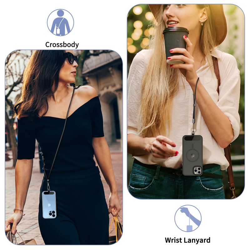 CACOE Cell Phone Lanyard 2 Pcs-1 Pcs Adjustable Neck Strap,1 Pcs Wrist Strap, 2 Pcs Pads, Universal Crossbody, Multifuctional Compatible with Most Smartphones(Black)