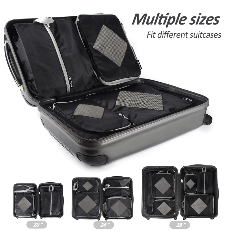 - PORTABLE TRAVEL ACCESSORIES:These travel packing organizers are perfect for your outgoing needs, whether you're going on vacation, hiking, camping. Our 5-set packing bags fit perfectly in 20 inch carry-on suitcase, or 24/28 inch checked luggage