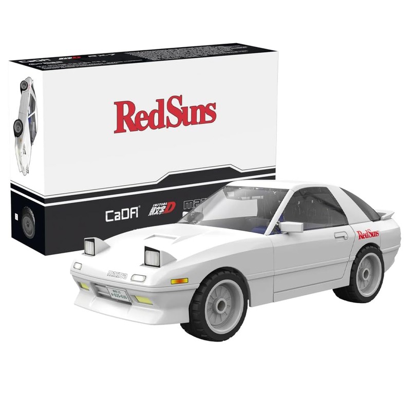 - Mazda RX-7 FC3S Initial D The kit consists of 66 pieces and allows you to assemble the amazing Mazda RX-7 FC3S Initial-D car yourself. The vehicle has been created with special attention to detail that will provide a realistic experience for Initial D fans. The car has a white body and realistic looking lights. It was created in 1:35 scale so it fits on a desk or shelf. Thanks to the small number of elements, the model is easy to assemble even for less experienced block enthusiasts.