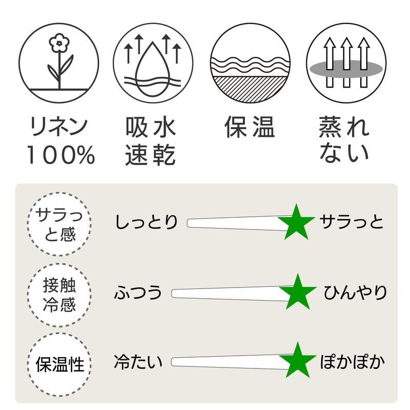 - (For a Comfortable Sleep All Year) The linen has high heat conductivity and a cool feeling to the touch. It also has a low moisture rate and does not leave moisture in the fibers. In addition, the fiber structure is hollow, so when sealed it will retain heat depending on your body temperature. It wraps your body in the summer without stickiness and warmth without feeling stuffy in winter