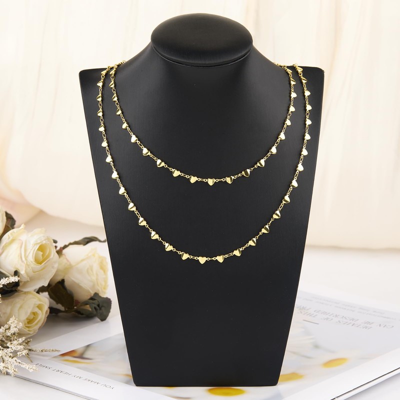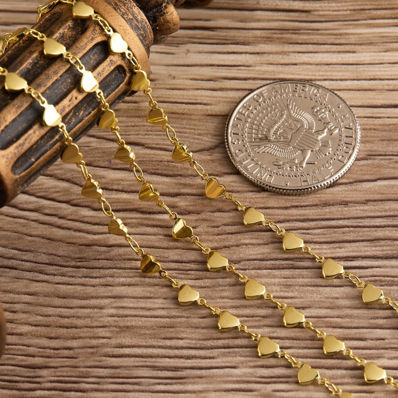 Cadenas chapadas en oro de 18 quilates para hacer joyas con eslabones de corazón de 13 pies con cierres de langosta y anillos de salto para mujeres