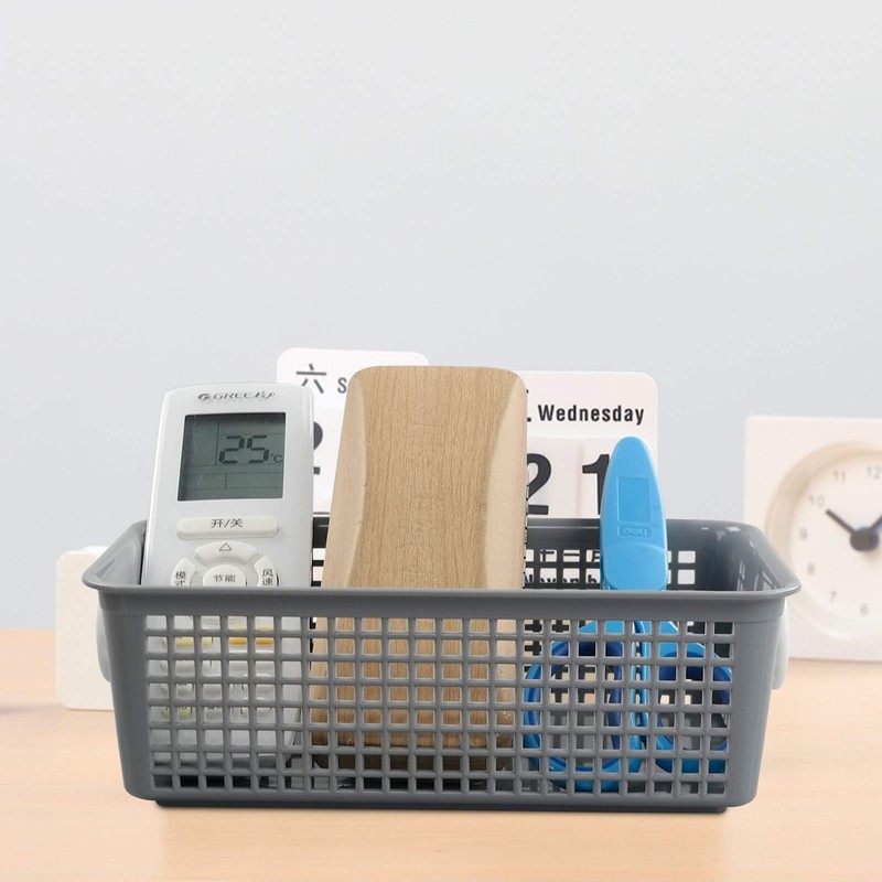 Cadineer 6 Packs Storage Basket with Handles, Plastic Grey Baskets, Small Baskets