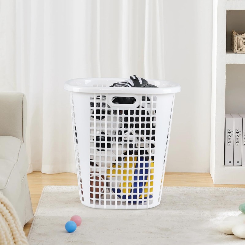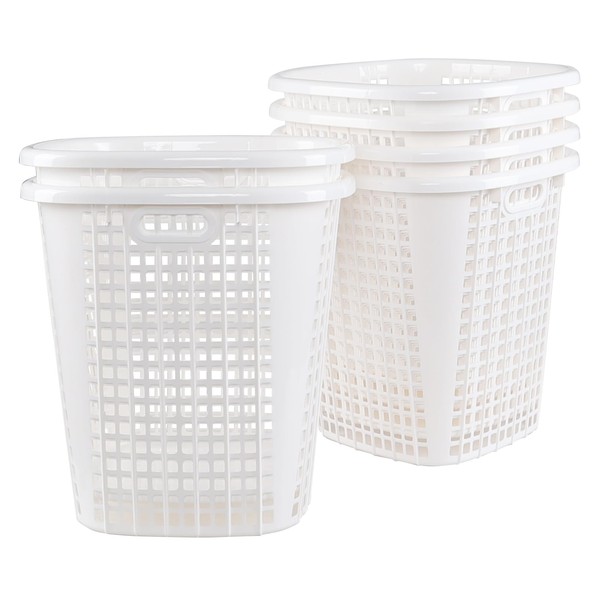 CadineUS 6 Pack Plastic Dirty Clothes Hamper, Laundry Basket with Handles, White