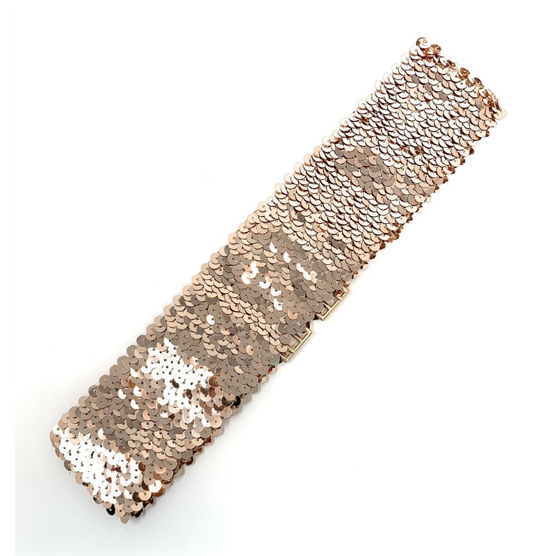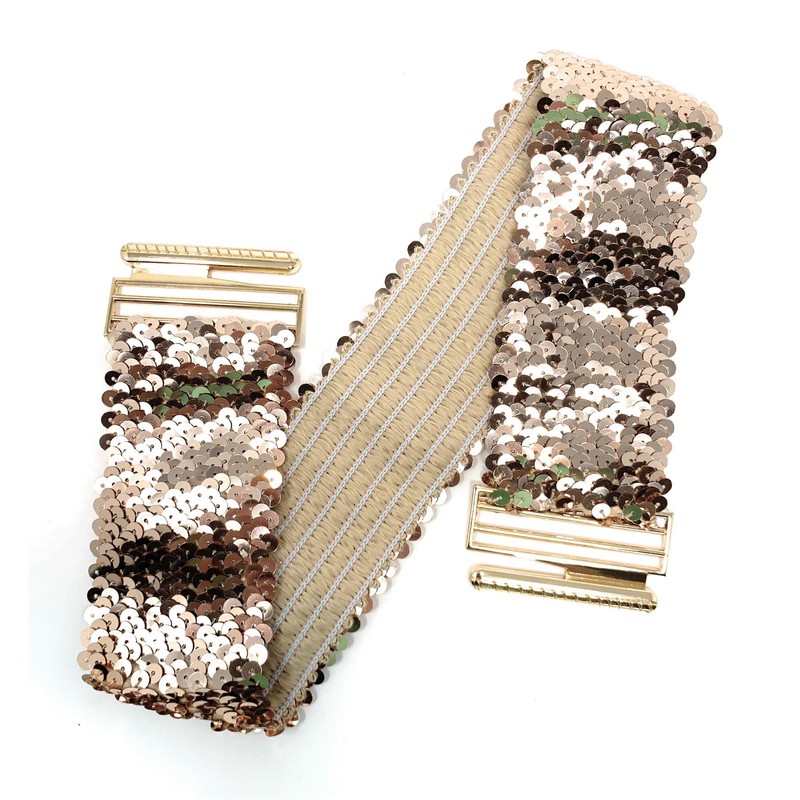 Cadoline Rose Gold Ladies Elasticated Belt Sequin With Stretch and Gold Buckle Waist Band Corset