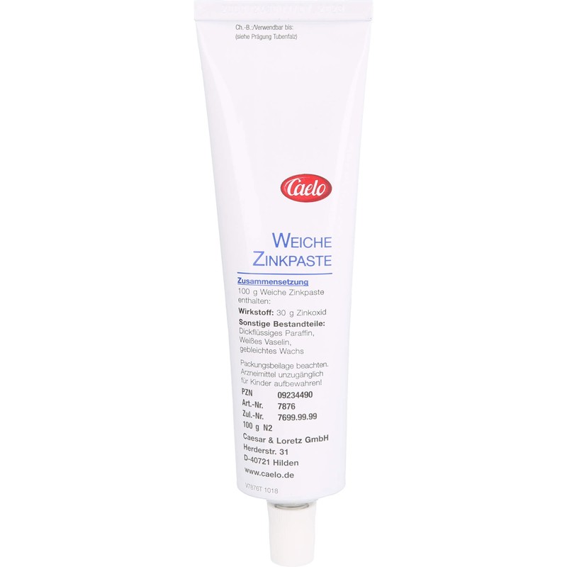 Arzneilich wirksame Bestandteile: 100 g Weiche Zinkpaste enthalten: Zinkoxid 30 g. Sonstige Bestandteile: Dickflüssiges Paraffin, weißes Vaselin, gebleichtes Wachs.