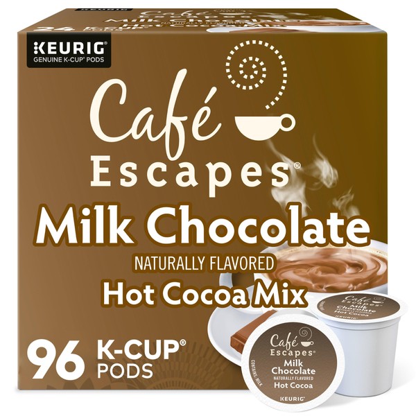 Cafe Escapes, Milk Chocolate Hot Cocoa, Single-Serve Keurig K-Cup Pods, 96 Count (4 Boxes of 24 Pods)