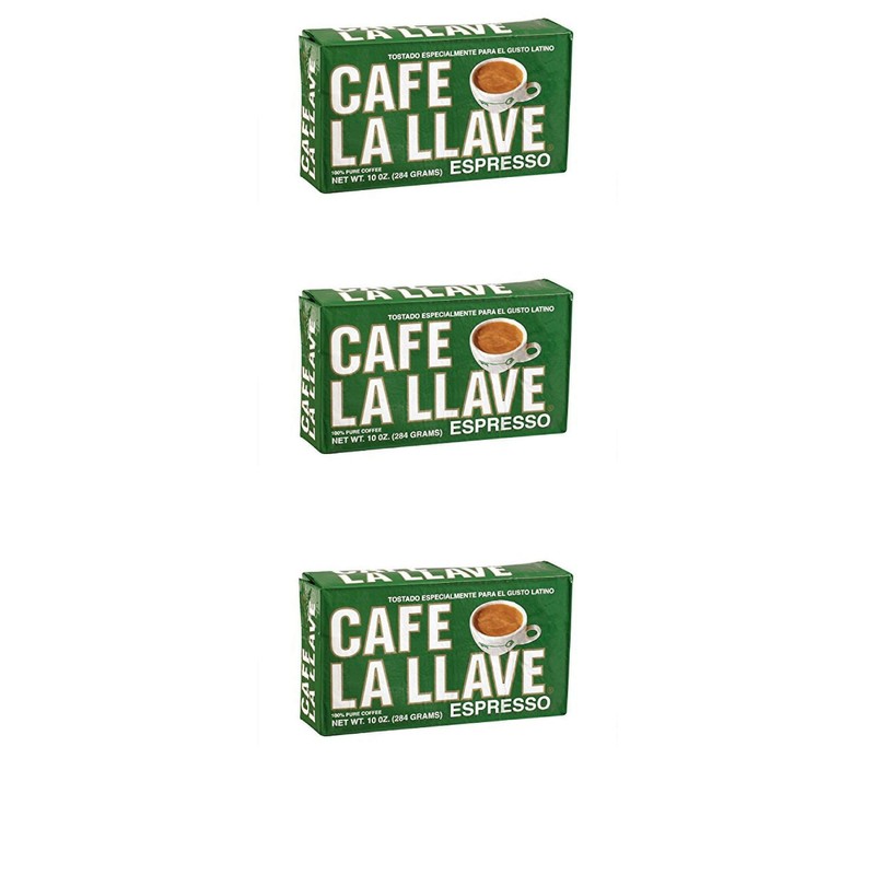 Café La Llave Espresso, 100% Pure Coffee, Rich and Aromatic, Fine-Grind, Dark-Roast, 10-Ounce Vacuum Sealed Brick Pack (3 Pack)