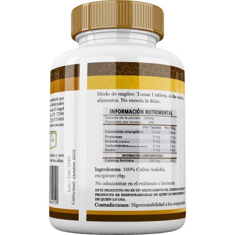 - El Caféina Anhidra Premium de la marca Healthy Superfoods es el suplemento perfecto para aquellos que buscan un impulso de energía natural. Cada tableta contiene 200mg de cafeína anhidra, lo que te brinda la dosis perfecta para mantenerte alerta y enfocado durante tus actividades diarias. Además, este producto es libre de gluten y vegano, por lo que es apto para personas con diferentes necesidades alimentarias. El formato en tabletas y el práctico envase de frasco hacen que sea fácil de llevar contigo a donde quiera que vayas. Su uso recomendado es deportivo, por lo que es ideal para aquellos que buscan mejorar su rendimiento físico y mental durante sus entrenamientos. Con una edad mínima recomendada de 18 años, este suplemento es perfecto para adultos que desean aumentar su energía de manera natural. Cada porción de 0.5g contiene 200mg de cafeína, lo que te brinda el impulso necesario para enfrentar tus actividades diarias con energía y vitalidad. No pierdas la oportunidad de probar el Caféina Anhidra Premium de Healthy Superfoods y experimentar los beneficios de la cafeína de alta calidad. Aumenta tu energía de manera natural y mejora tu rendimiento físico y mental. ¡No esperes más y adquiere el tuyo ahora mismo! Aviso legal
