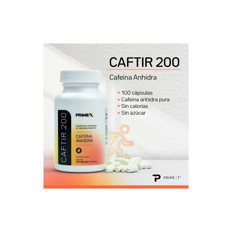 Cafeína Anhidra Pura Primetech 100 Cápsulas Con 200 Mg Sabor Sin sabor