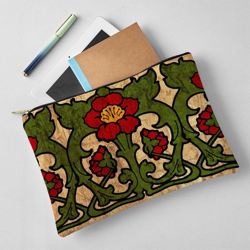 CafePress Art Nouveau Floral Motif Border Large Zipper Toiletry Pouch, 12.5" x 8.5"