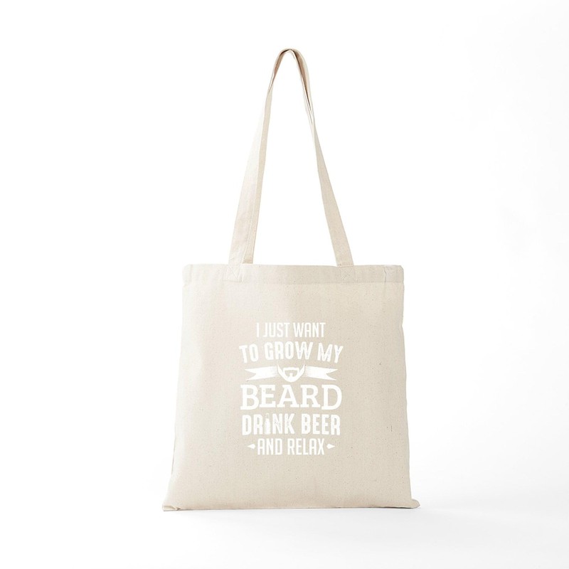 CafePress Bearded Man Grow My Beard Drink Be Reusable Natural Beige Canvas Shopping Bag