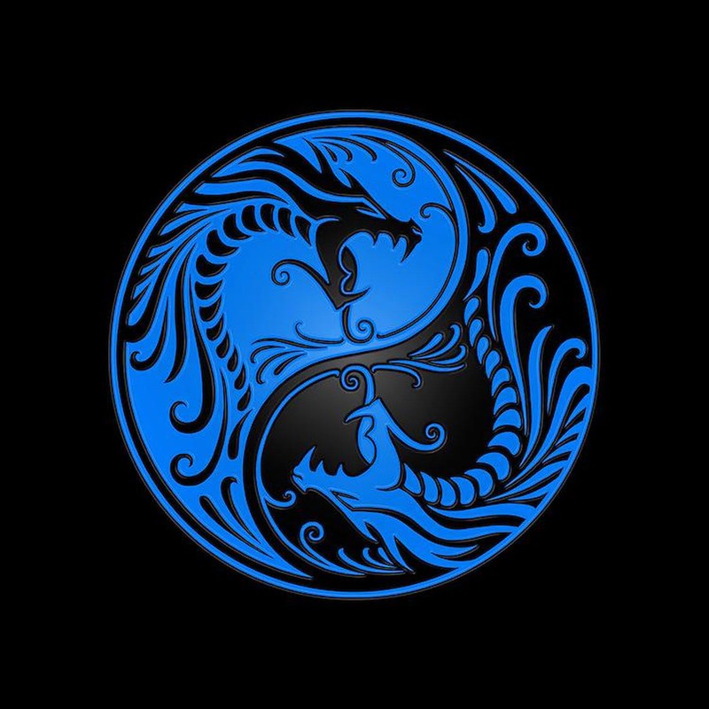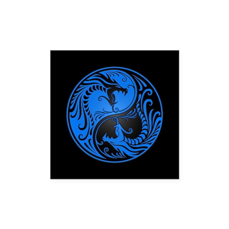 CafePress Blue Yin Yang Dragons with Black Back Square Car M Square Car Magnet, Magnetic Bumper Display
