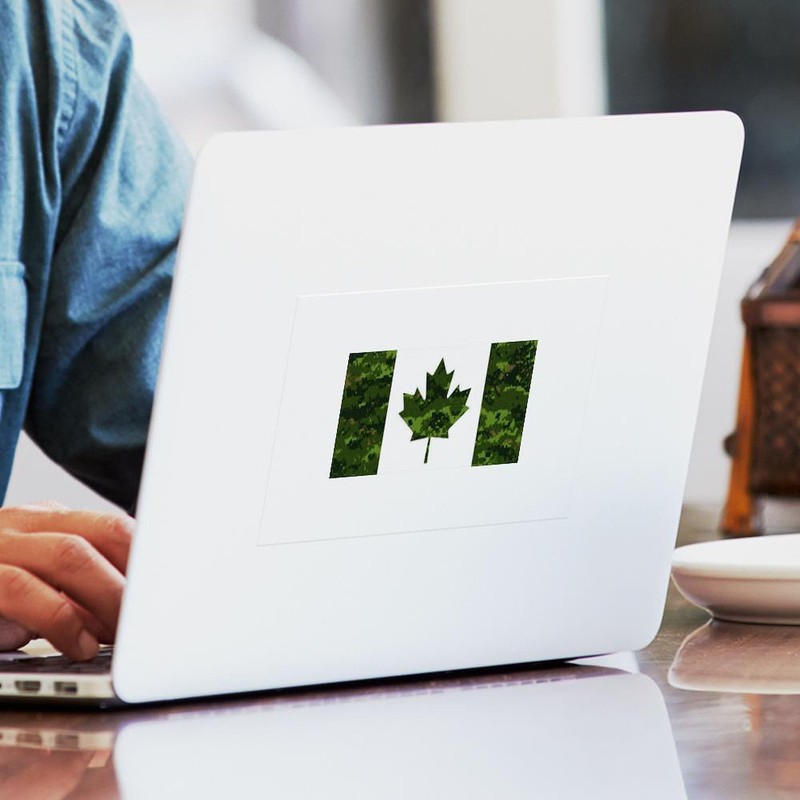CafePress Canadian Flag with Green Camo Background Sticker Rectangle Bumper Sticker Car Decal