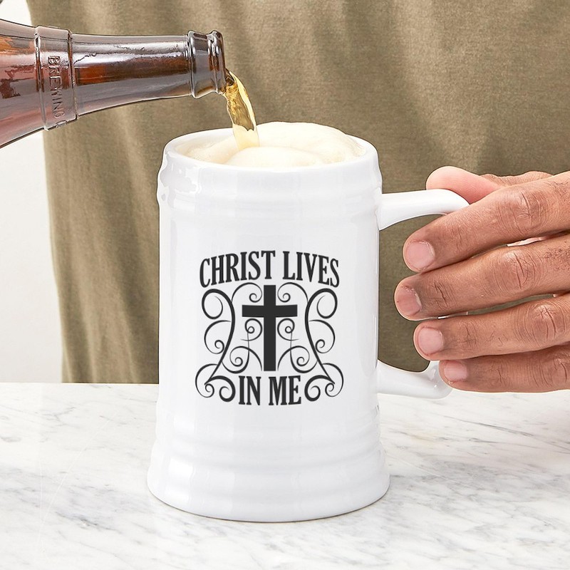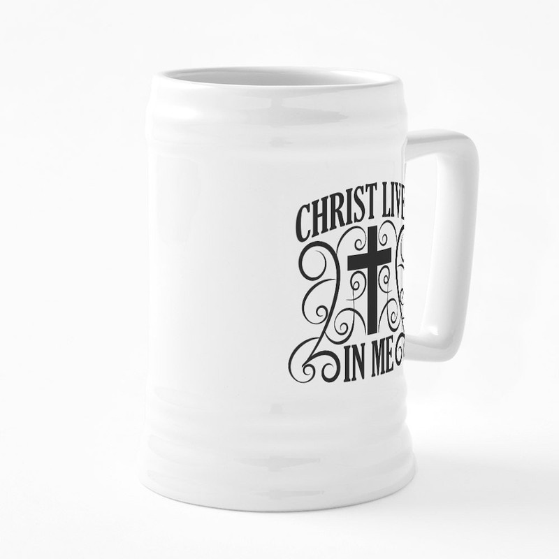 CafePress Christ Is In Me Black Typography Cross With Swirls 25 oz Ceramic Beer Stein Mug