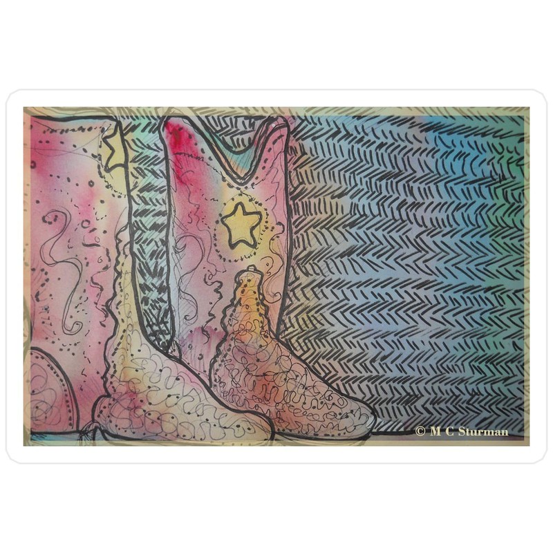 CafePress Cowboy Boots, Fun Art Small Die Cut Sticker, 3"x4" Matte Finish