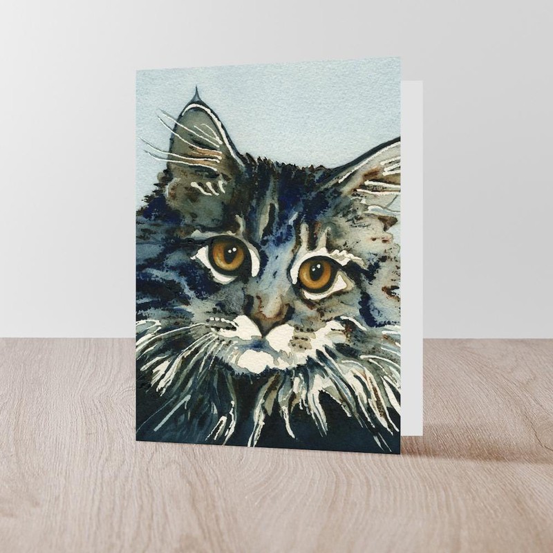 CafePress Elfin Maine Coon Cat By Lori Alexand Folded Greeting Card Glossy