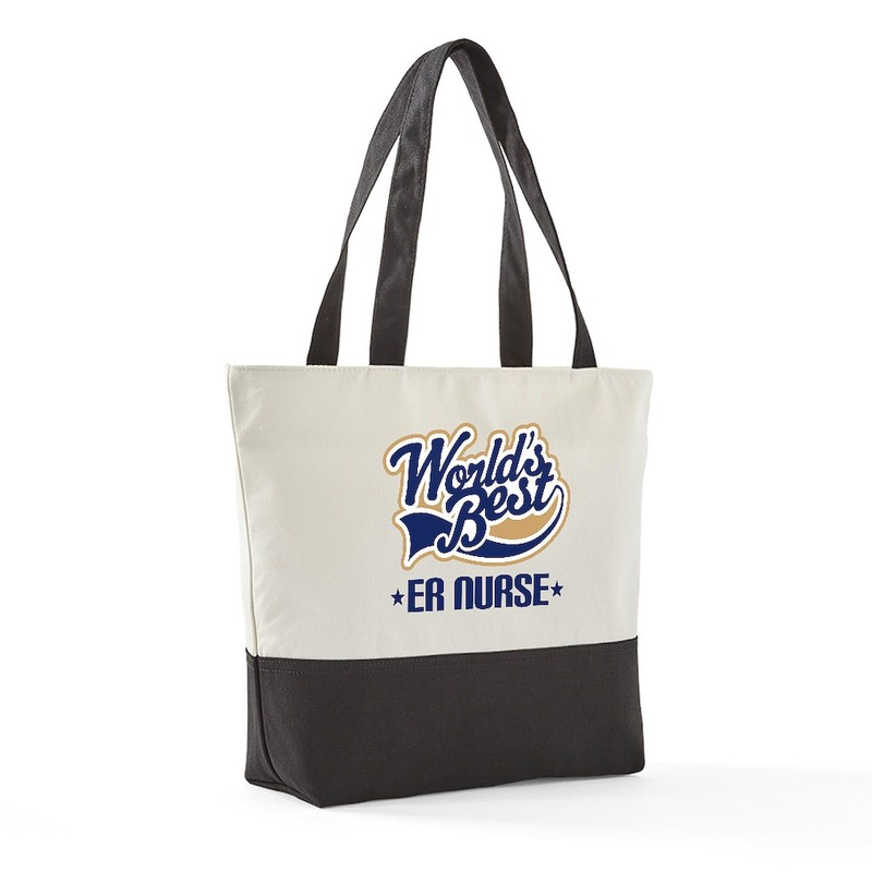 CafePress ER Nurse Wb Navytan Canvas Tote Top Zipper Closure