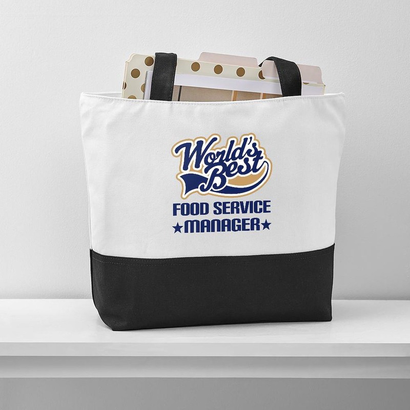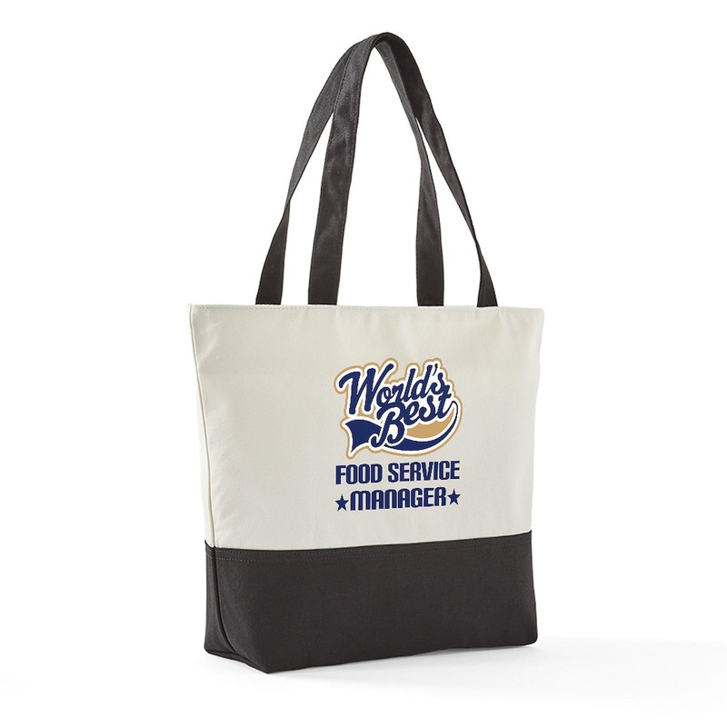 CafePress Food Service Manager Wb Navytan 01 Canvas Tote Top Zipper Closure