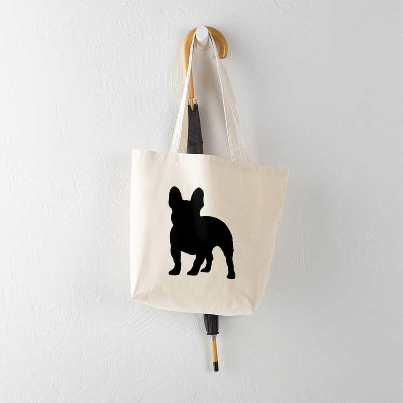 CafePress French Bulldog Silhouette Tote Bag Reusable Natural Beige Canvas Shopping Bag