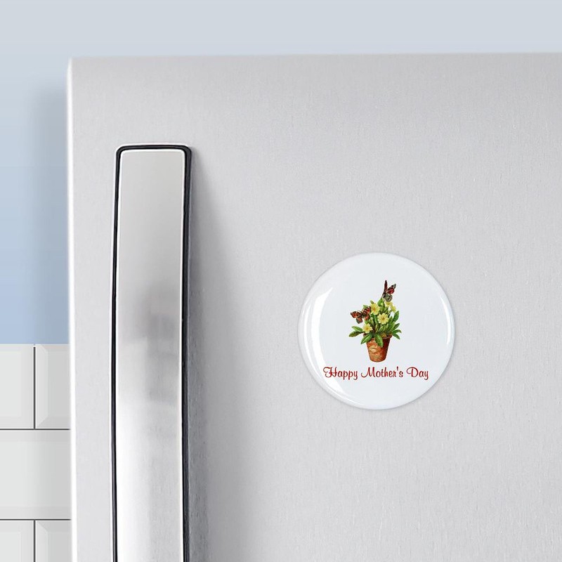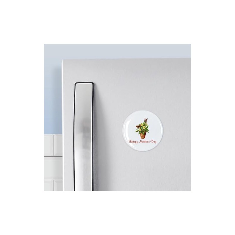 - Our high quality fridge magnet is professionally printed on 2.25"" x 2.25" diameter metal shell (approximate size) with a flat magnetic backing. This round refrigerator magnet is also protected by a clear mylar/UV cover.