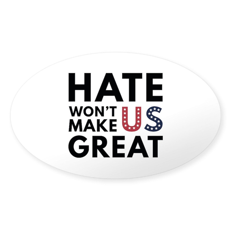 CafePress Hate Won't Make US Great Oval Car Bumper Sticker