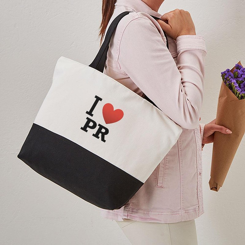 CafePress I Love Puerto Rico Canvas Tote Top Zipper Closure