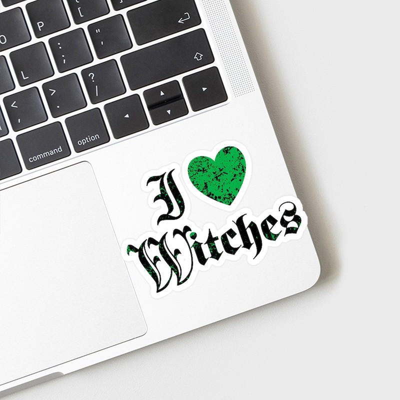 CafePress I Love Witches_Bl Small Die Cut Sticker, 3"x4" Glossy Finish