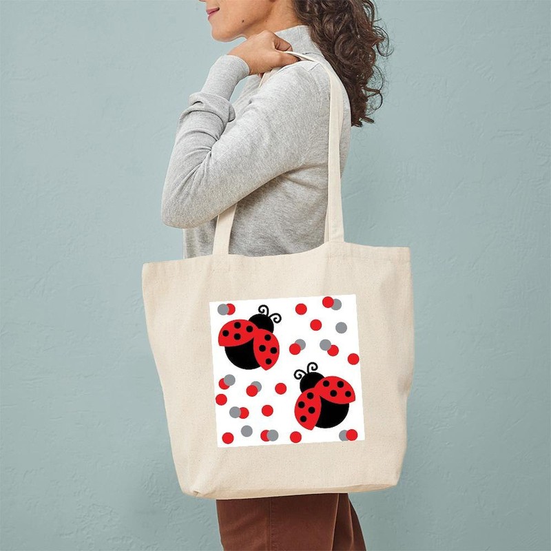 CafePress LADYBUG DUO Tote Bag Reusable Natural Beige Canvas Shopping Bag