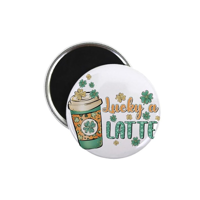 CafePress Lucky A Latte St Patrick's Day Magnets 2.25" Round Magnet, Refrigerator Magnet
