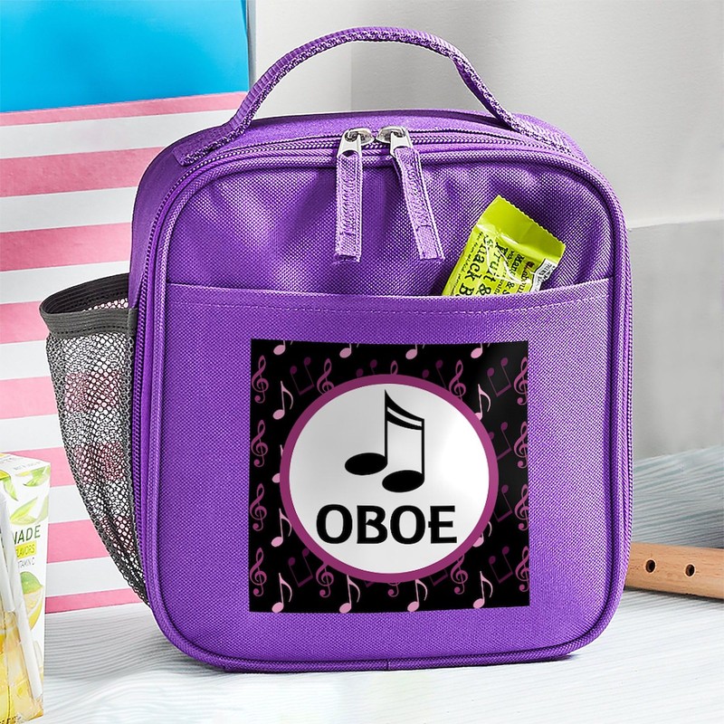 This lunch box takes lunchtime and snack time to whole new levels! Choose from 1000s of unique designs and original artwork. The lunch bag is made of polyester. The lunch box features food-safe wipe-clean lining, a molded interior for hot/cold containers, inner and outer zip, and side mesh water bottle pockets. Spot Clean. Lunch box measures 7.5"Wx8.25"Hx3.125"D