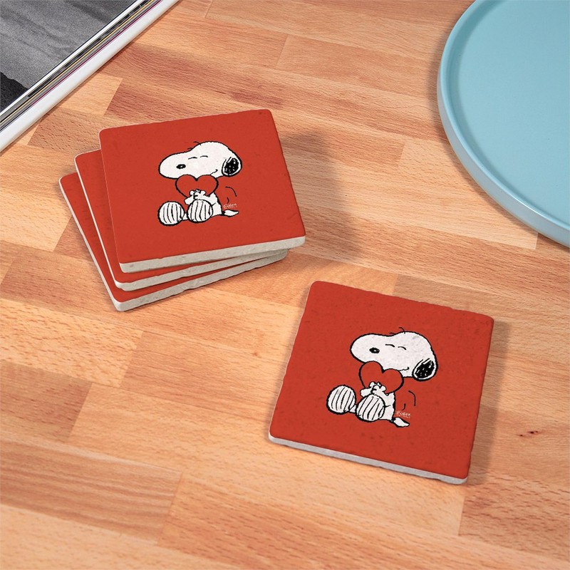 CafePress Peanuts: Snoopy Heart Tumbled Stone - Set of 4 Coasters Set of 4