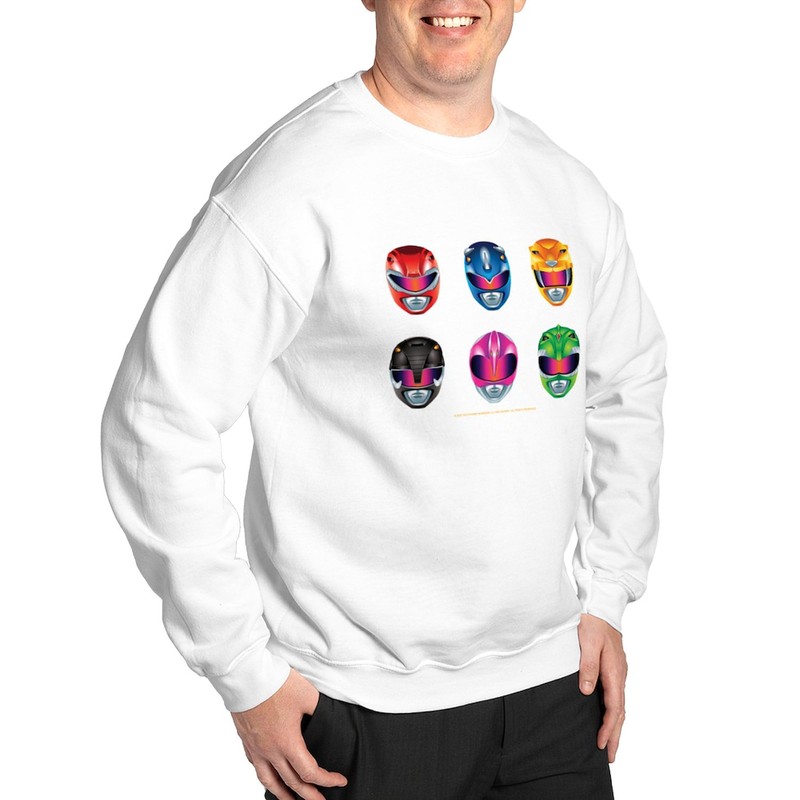 CafePress Power Rangers Helmet Icons Sweatshirt Classic Crew Neck Light Sweatshirt White