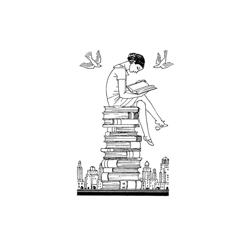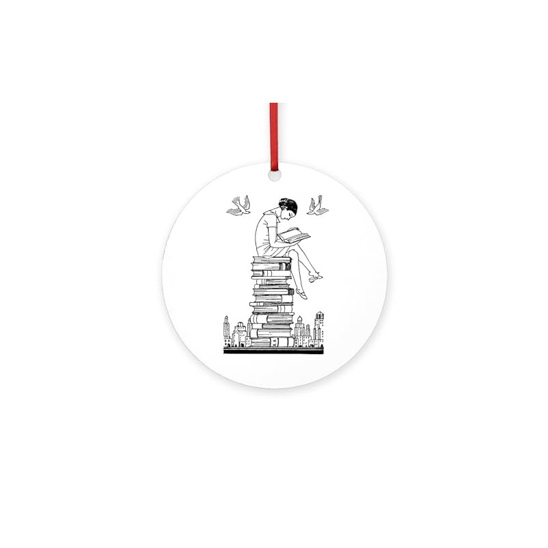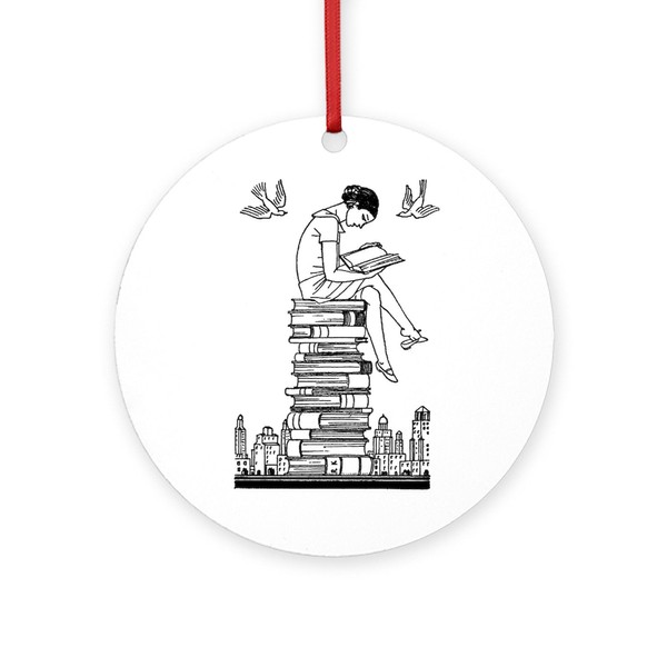 CafePress Reading Girl ATOP Books Round 4" MDF Holiday Ornament