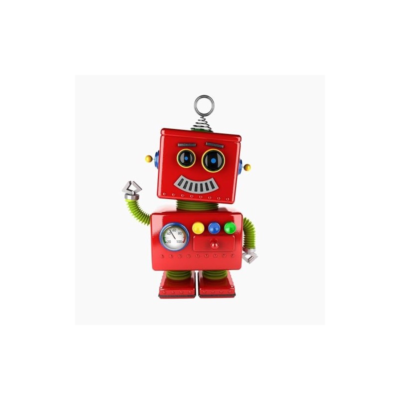 CafePress Red Toy Robot Waving Hello Magnets 2.25" Round Button Magnet (10 Pack)