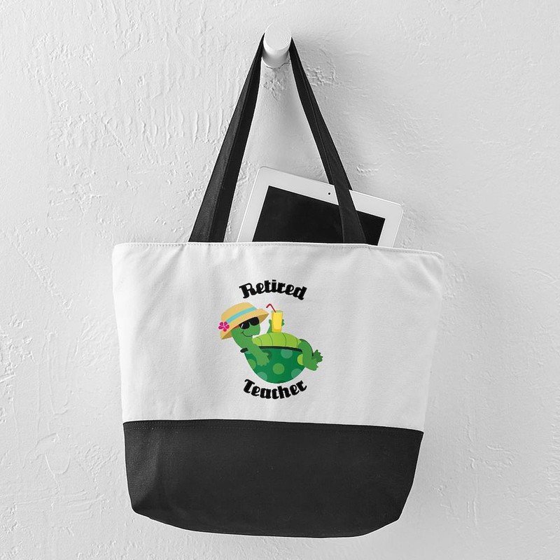 CafePress Retired Teacher Turtle Canvas Tote Top Zipper Closure