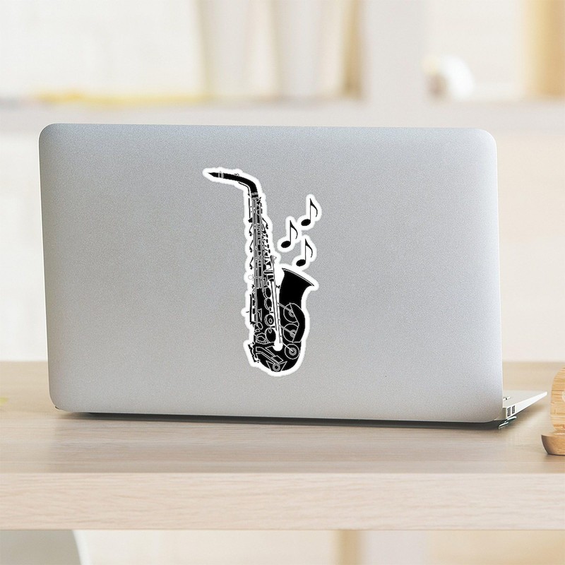 CafePress Saxophone Music Notes Medium Die Cut Sticker, 5.75" x 5.75" Glossy Finish
