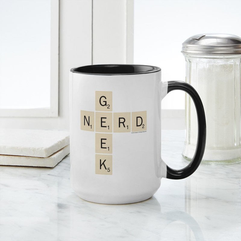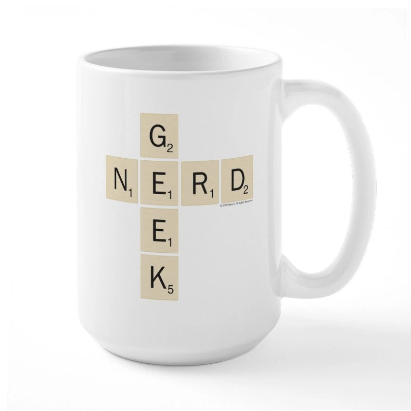 CafePress Scrabble Geek Nerd 15 Oz Ceramic Large Mug (207146368) - White/Black Inside