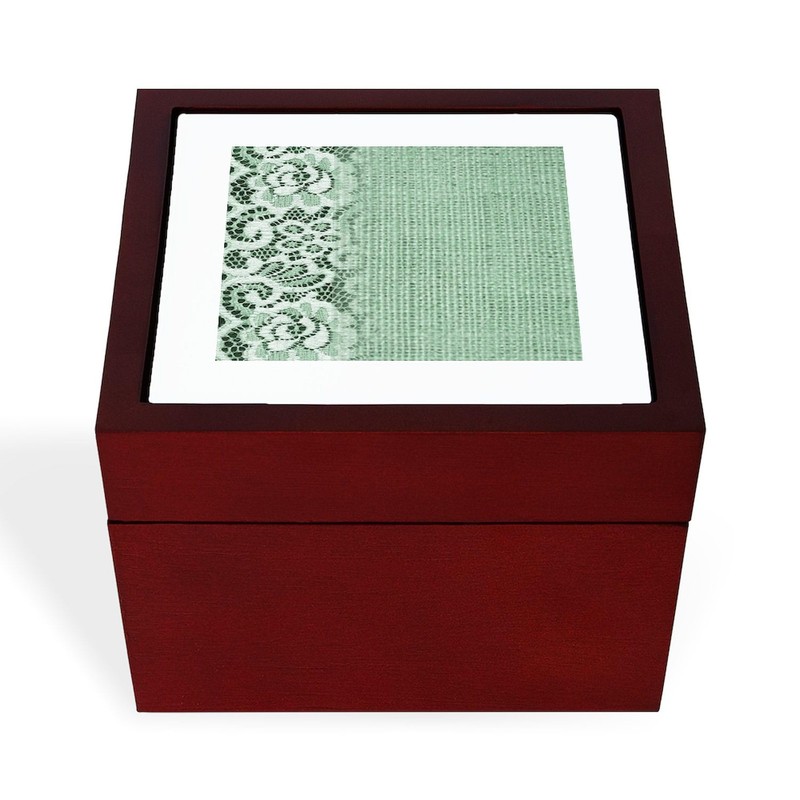 CafePress Spring Mint Green Burlap Lace Memory Keepsake Jewelry Box, 5"x5"x3.75"
