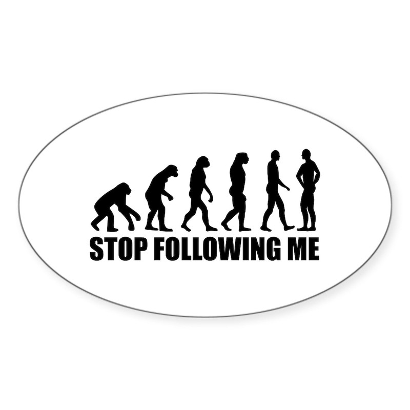 CafePress Stop Following Me Evolution Oval Car Bumper Sticker