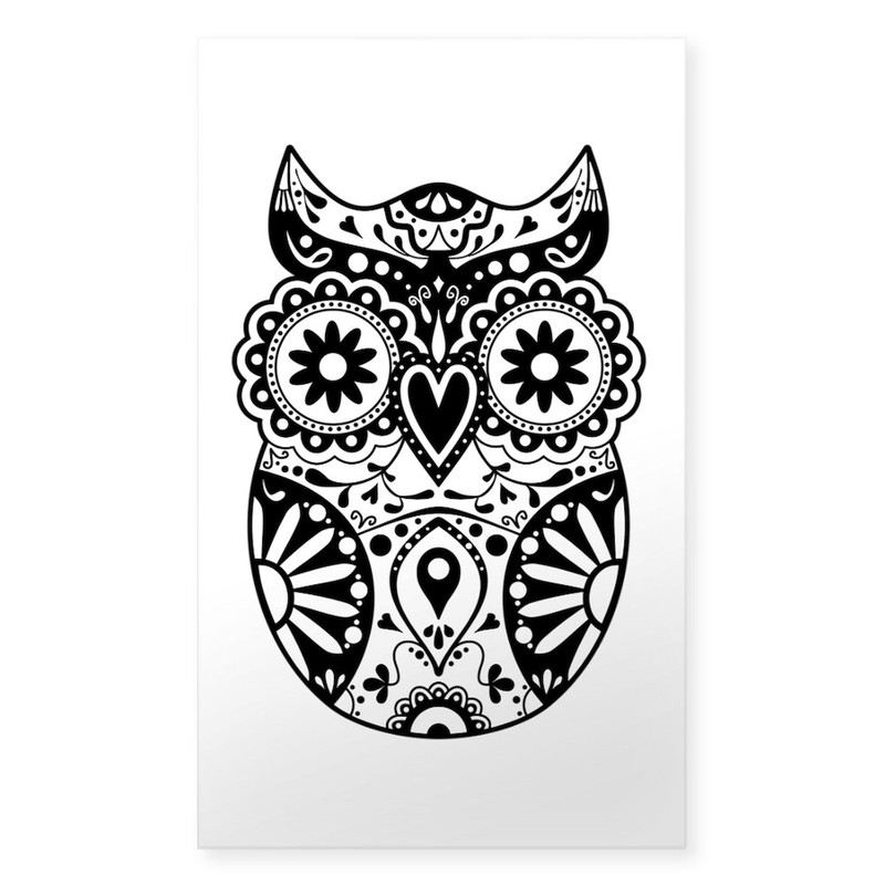 CafePress Sugar Skull Owl Rectangle Bumper Sticker Car Decal