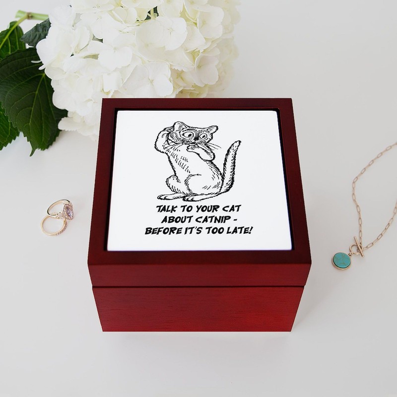 CafePress Talk to Your CAT About Catnip Memory Keepsake Jewelry Box, 5"x5"x3.75"